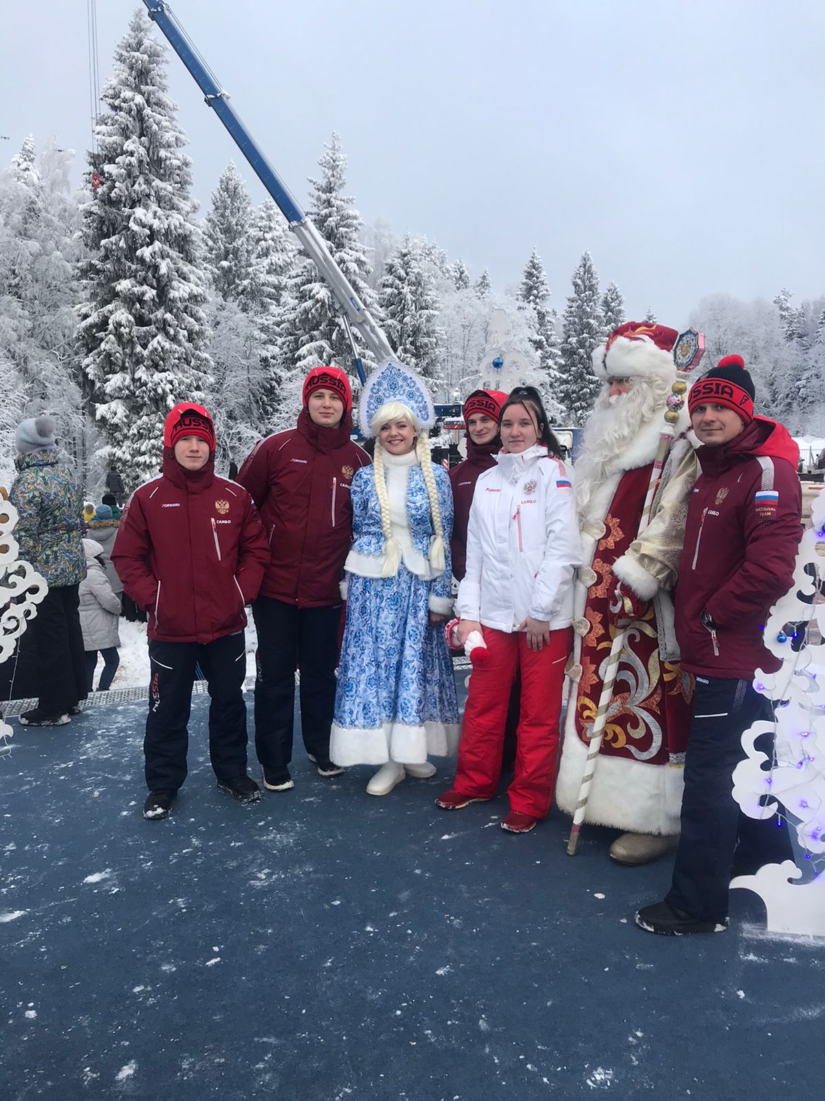 «Торжественное мероприятие по спилу главного символа Нового года включило в себя и показательные выступления самбистов, членов сборной команды Московской области Ивана Захарова, Юрия Рогачева, Ильи Бакотина, Киры Калининой и Льва Евстифеева. Под руководством своего тренера Виктора Худякова продемонстрировали собравшимся арсенал национального вида спорта самбо и призвали всех вести активный образ жизни», - отметил Ружицкий.