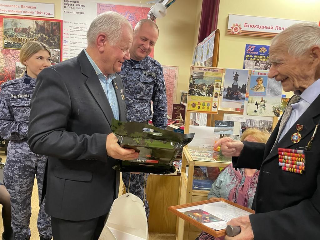 Сотрудники Люберецкого отдела вневедомственной охраны Главного управления Росгвардии по Московской области совместно с председателем Люберецкого отделения ветеранов войск правопорядка подполковником милиции в отставке Владимиром Халяпиным поздравили с 98-летием ветерана Великой Отечественной войны Ивана Пшеничкина.