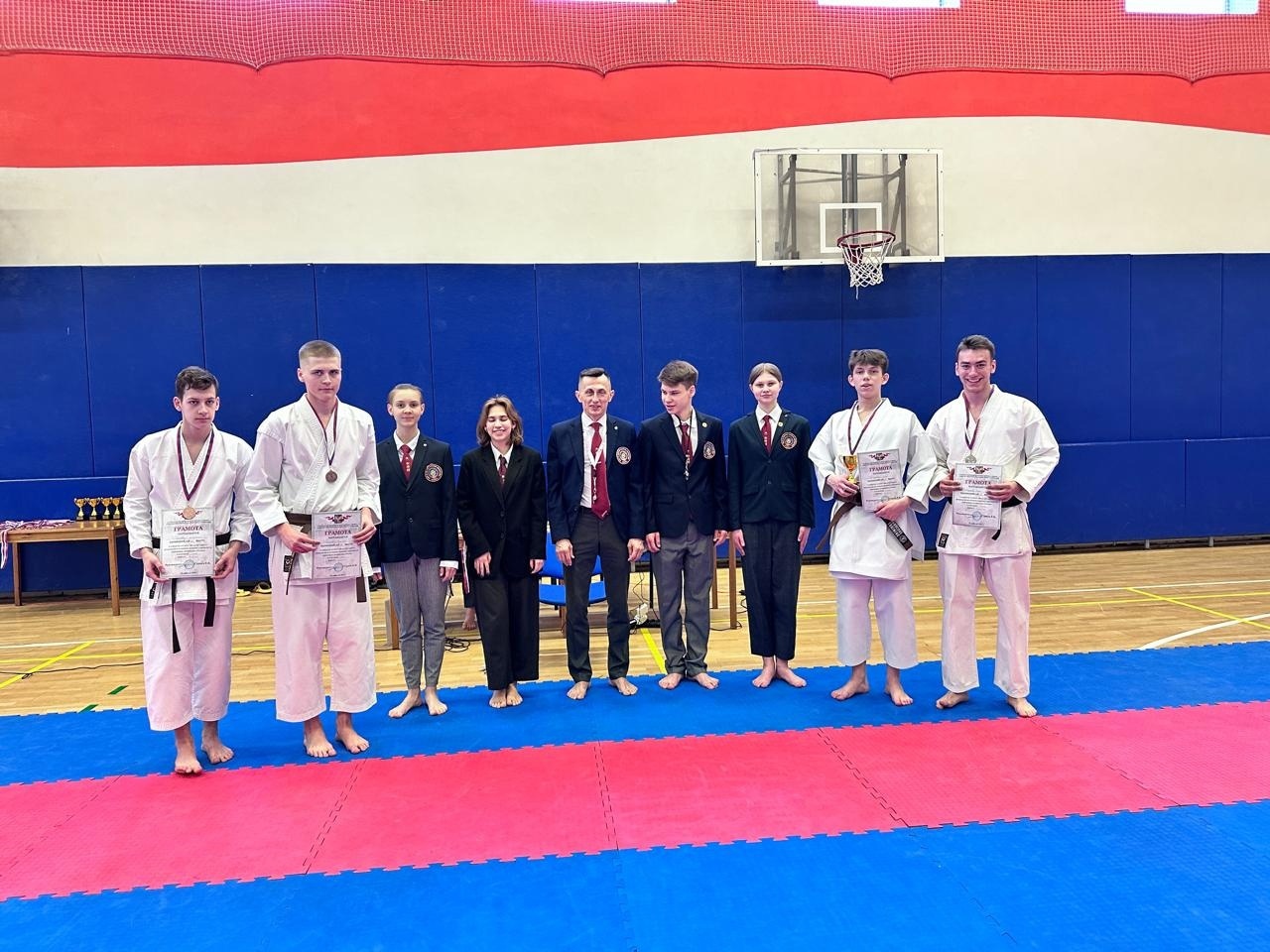 На открытии турнира вручили восемь судейских книжек старшим спортсменам КСШОР, которым была присвоена 3-я государственная судейская категория по восточному боевому единоборству.