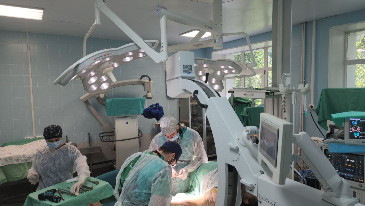 «Мы стабилизировали кость с помощью пластины и винтов. Операция проходила под контролем рентген-оборудования в онлайн-режиме. Стабилизация получилась хорошая, всё собрали, ждем хорошую реабилитацию», - отметил хирург-травматолог Люберецкой областной больницы Али Гаджиев.