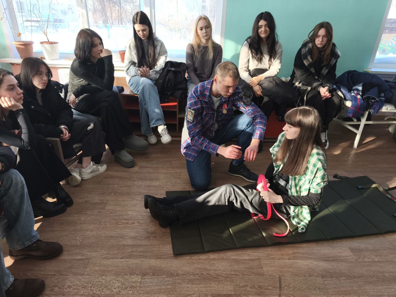 Гостем встречи стал ветеран СВО Иван Монец. Он рассказал старшеклассникам о современных видах вооружения Российской армии, их характеристиках и применении, а также провёл подробный и наглядный инструктаж по оказанию первой доврачебной медицинской помощи. Особое внимание было уделено алгоритмам действий при различных травмах, что вызвало интерес у школьников.