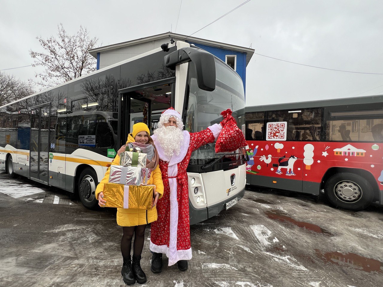Автобус украшен в рамках проекта губернатора «Зима в Подмосковье».