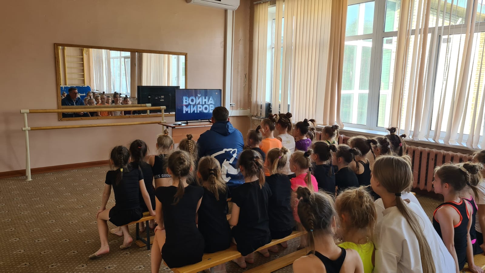 В спортшколе олимпийского резерва в городском округе Люберцы партийцы организовали просмотр документального сериала «Война миров» Спортсмены против фашистов. Неизвестные подвиги чемпионов».