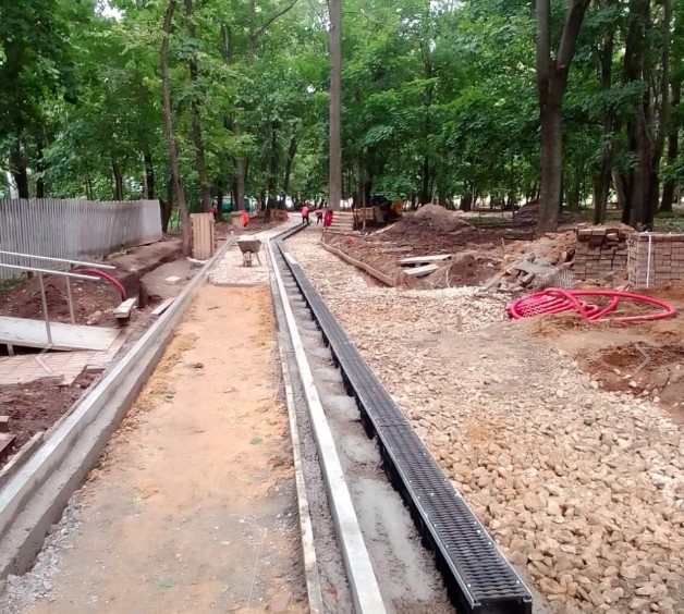 «В Наташинском парке продолжается реконструкция. Рабочие ведут демонтаж плиточного покрытия, опор освещения, бетонных опор и малых архитектурных форм. Ведется разработка грунта механизированным и ручным способом, устройство корыта, геополотна, песчаного основания с последующим уплотнением, армирующего материала ARMAT-150, щебеночного основания, армирующей сетки, бетонного основания под плиточное покрытие, бетонного борта, подземных коммуникаций, систем освещения, электроснабжения и видеонаблюдения, бетонной ленты под металлический борт и ливневого лотка, вывоз и утилизация грунта и строительного мусора», - отметил Волков.