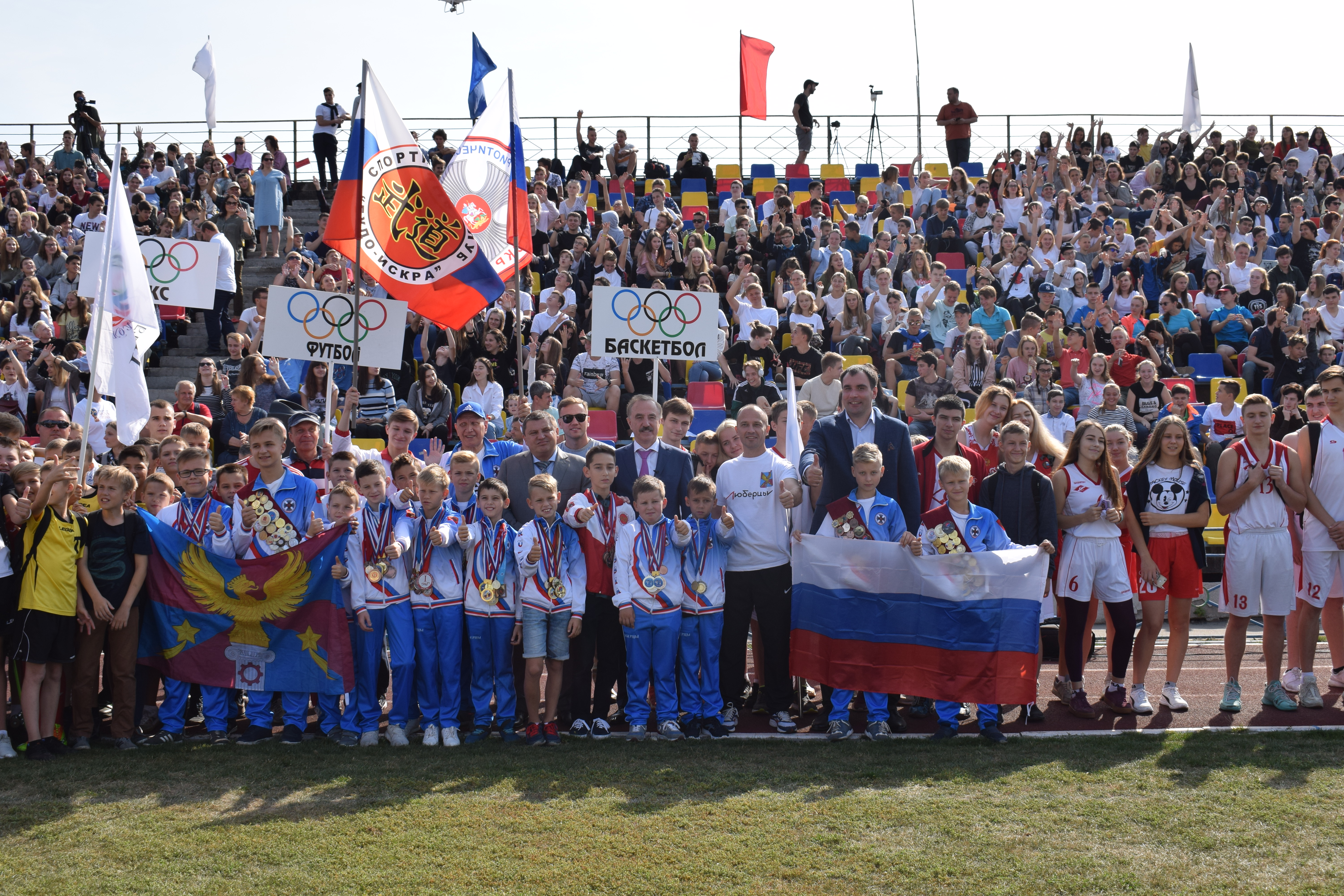 Спортивный праздник на стадионе «Торпедо» завершился флэшмобом, в котором приняли участие около 3 тысяч спортсменов и учащихся школ Люберец. Участники выстроились в виде сочетания «Люберцы 395».