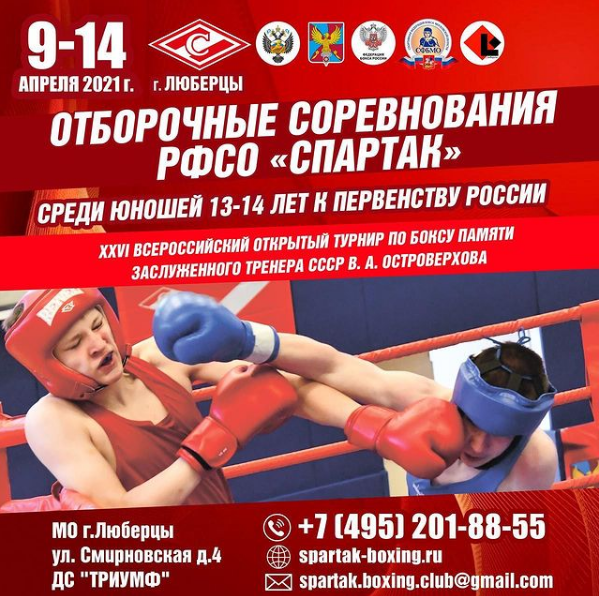 «С 9 по 14 апреля на боксерском ринге дворца спорта «Триумф» Люберец за звание лучших поборются юные спортсмены из различных субъектов России. Победители получат путевку на первенство России 2021 года среди юношей 13-14 лет от российского физкультурно-спортивного общества «Спартак». Призеров наградят медалями и дипломами», - говорится в сообщении.