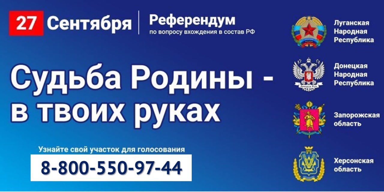 Напомним, референдум по вопросу о вхождении в состав России стартовал 23 сентября в ДНР и ЛНР, а также в Херсонской и Запорожской областях.