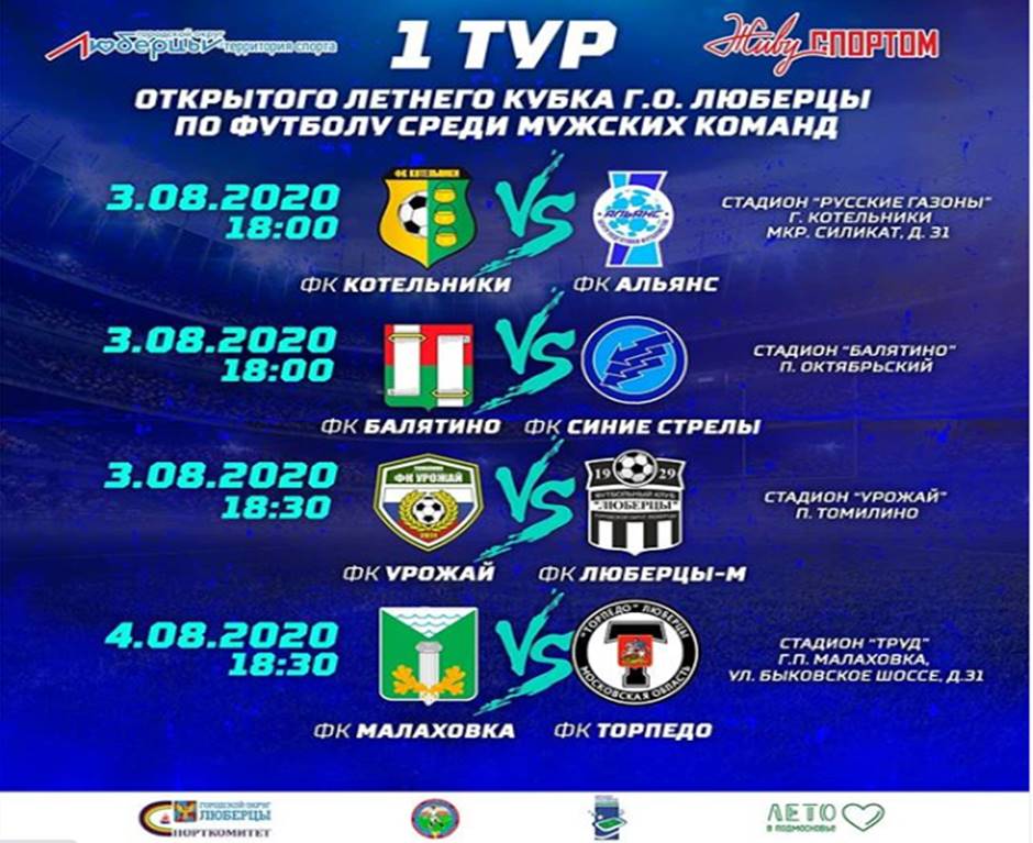 3 августа стартовал первый тур открытого летнего кубка городского округа Люберцы по футболу среди мужских команд.