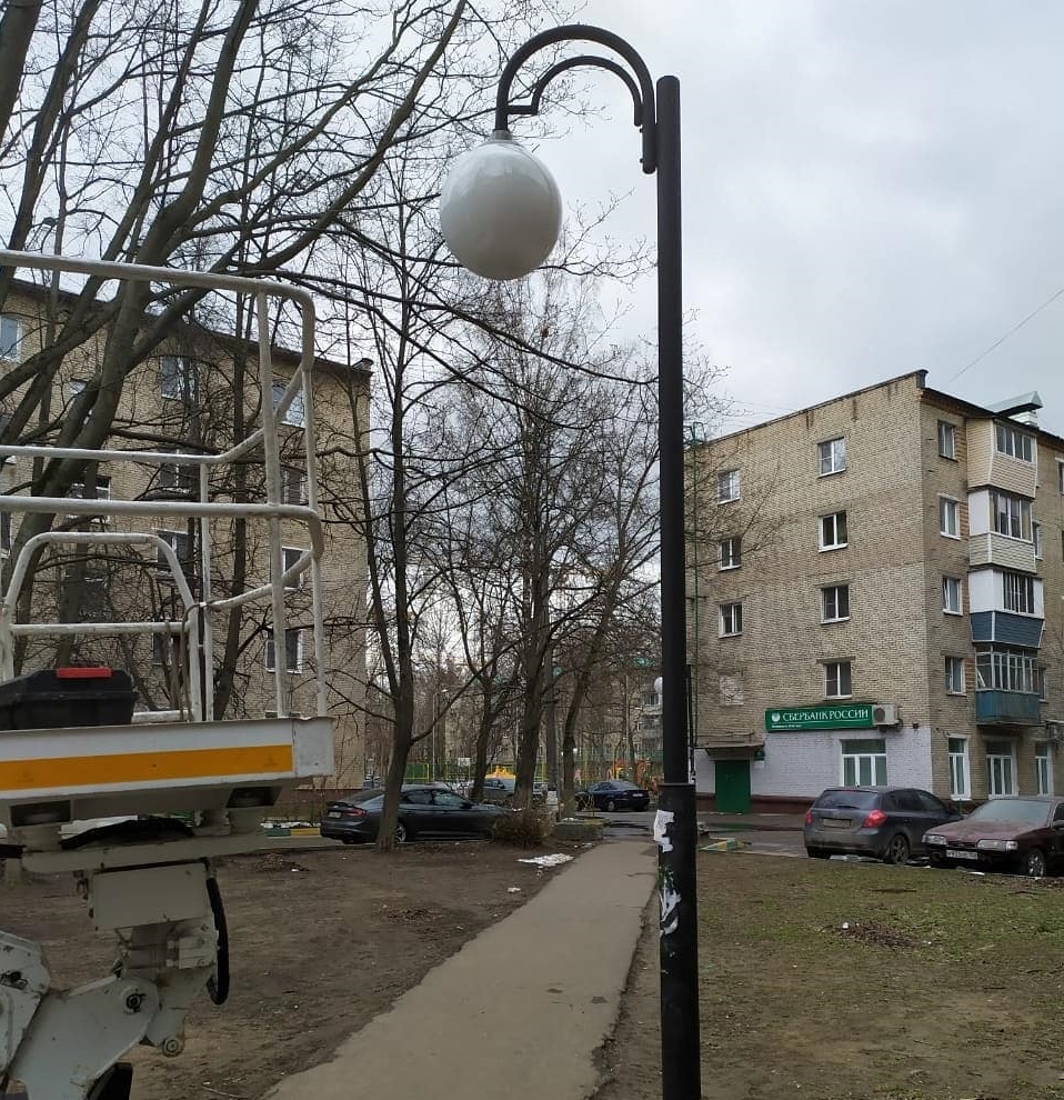 В жилом микрорайоне Птицефабрика городского округа Люберцы проведены работы по восстановлению освещения и замене плафона уличного фонаря.
