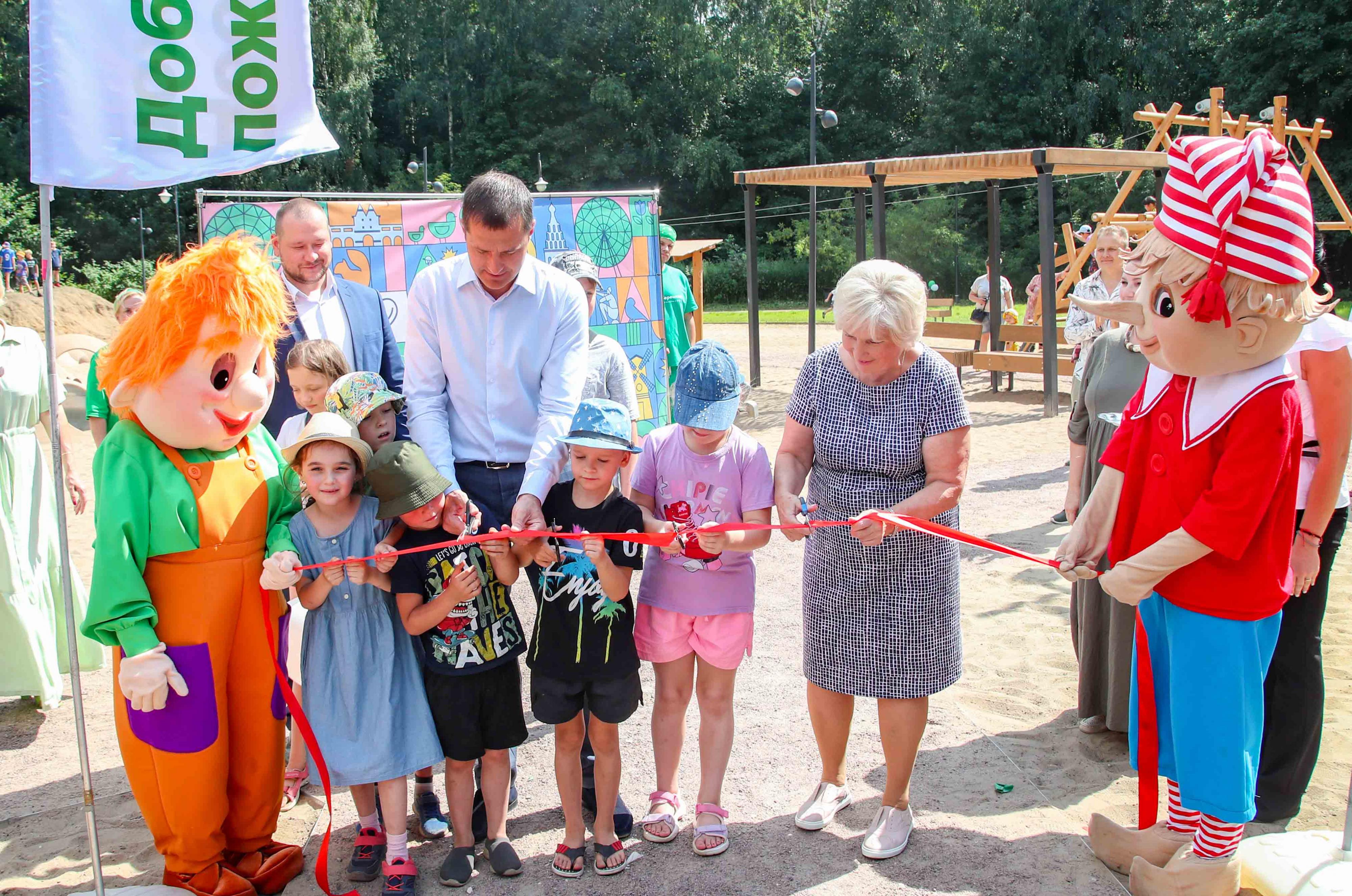 Он вместе c депутатом Мособлдумы Лидией Антоновой дал старт детскому празднику в честь открытия площадки.