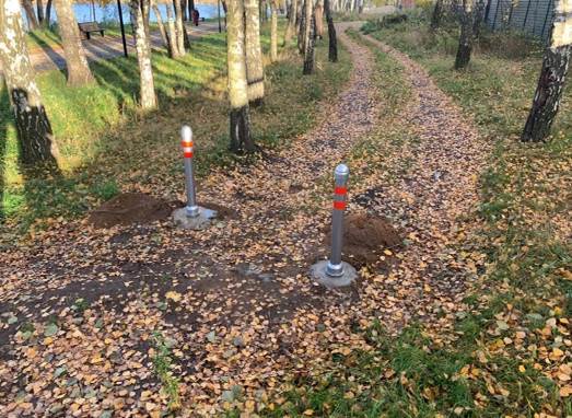 В парке Малаховки установили столбики, ограничивающие въезд машинам