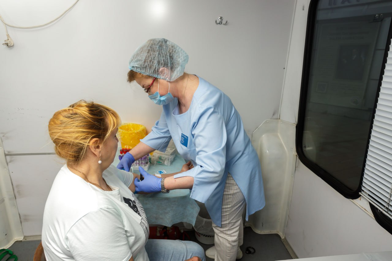 Преимущество обследования на свежем воздухе в том, что можно прийти всей семьей, и пока дети развлекаются на детской площадке, взрослые занимаются своим здоровьем. Рекомендуется пройти обследования натощак, чтобы в день обращения произвести забор крови. А еще необходимо хорошее настроение и желание, а все остальное сделают медицинские работники.