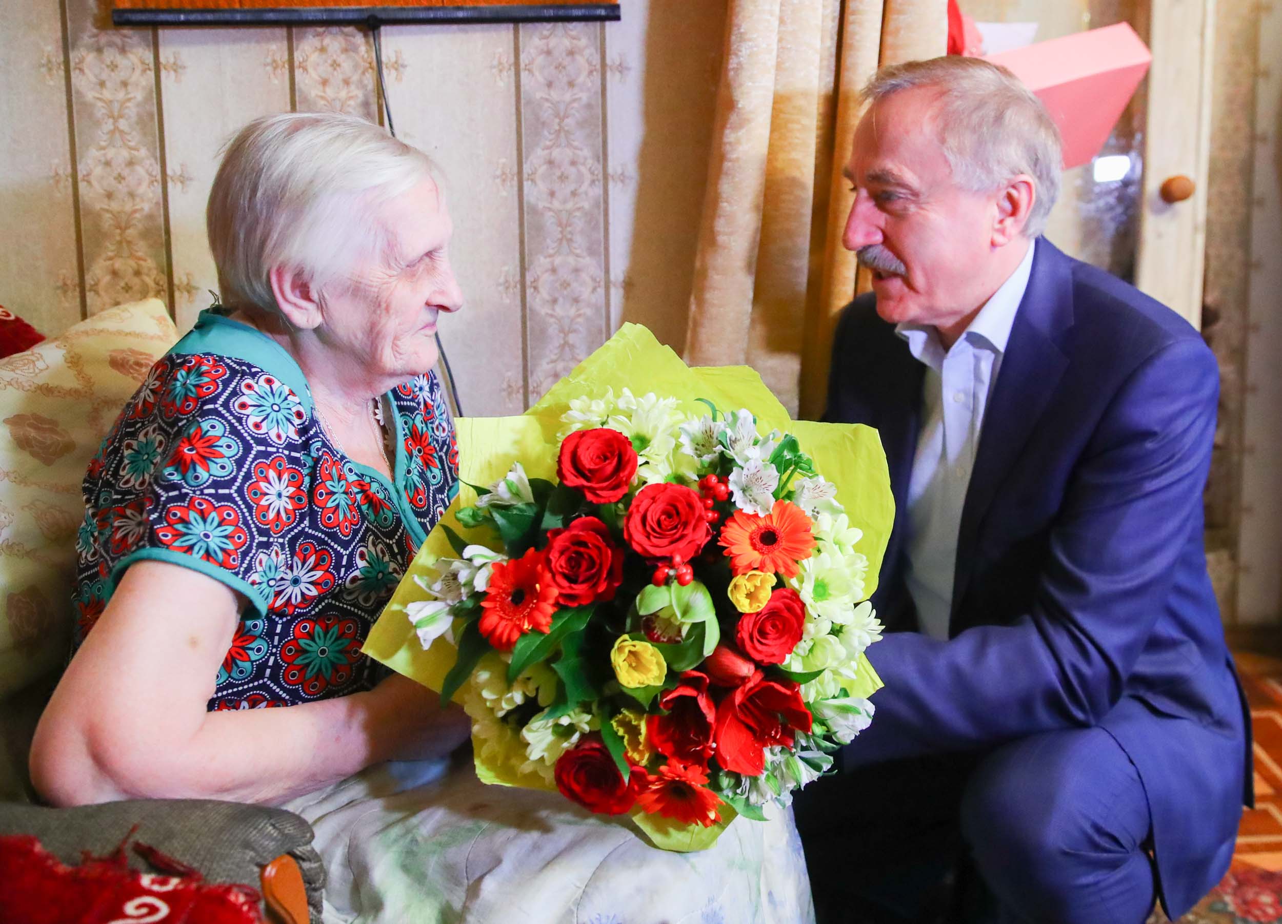 Глава округа вручил Тамаре Сергеевне цветы, подарки и поздравительные адреса.