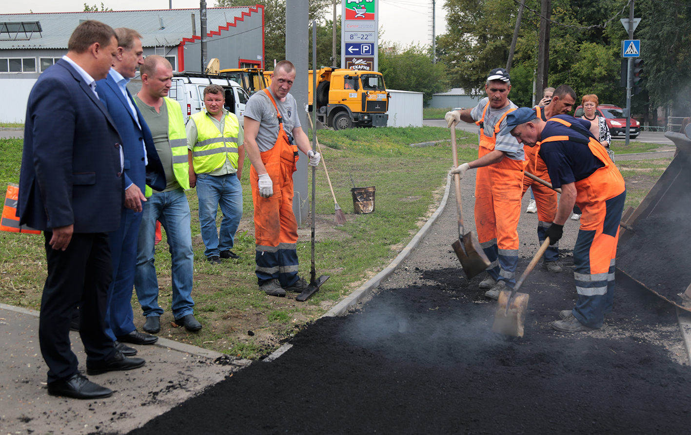 Глава вместе с представителями подрядной организации проинспектировал качество проводимых работ. Заметим, что протяженность ремонтируемого участка тротуара составляет