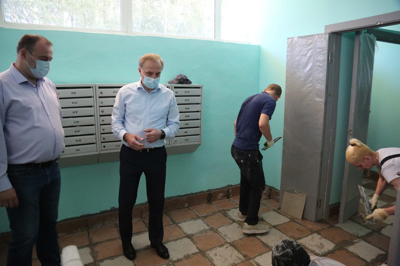 В среду, 16 июня, глава городского округа Люберцы Владимир Ружицкий проинспектировал ход ремонтных работ подъездов жилых домов в посёлке Томилино.