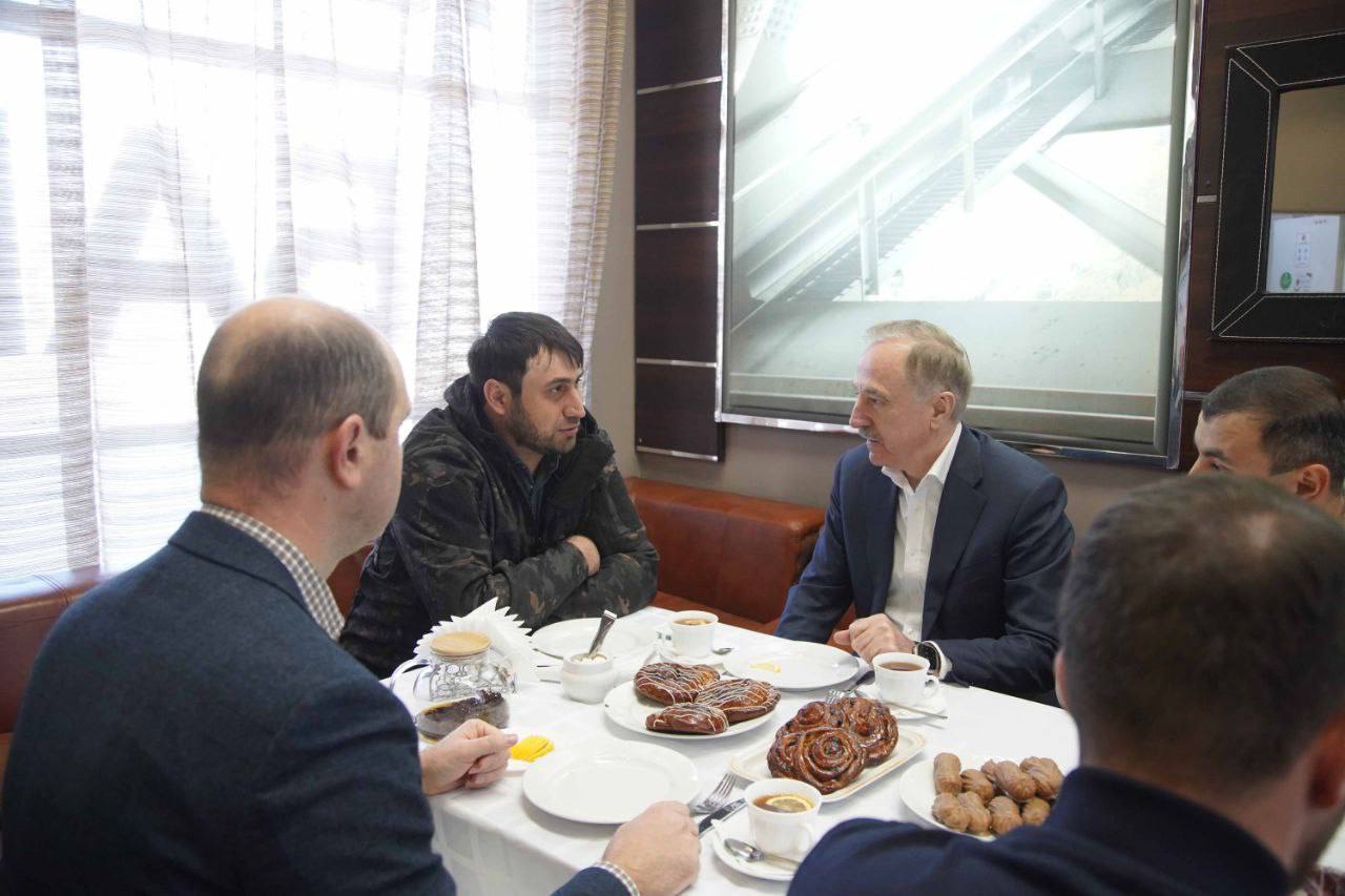 Председатель Совета депутатов городского округа Люберцы, секретарь местного отделения «Единой России» Владимир Ружицкий с коллегами-депутатами встретился с Тамирланом - мобилизованным бойцом СВО.
