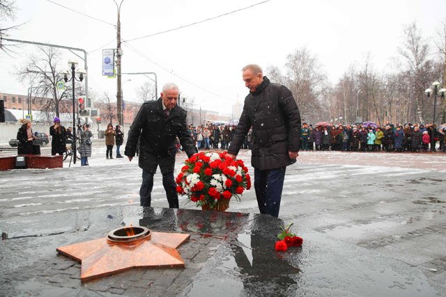 В воскресенье, 23 февраля, глава городского округа Люберцы Владимир Ружицкий и председатель Совета ветеранов Юрий Орехов возложили цветы к мемориалу «Вечный огонь». В мероприятии также приняли участие ветераны и военнослужащие, представители администрации, политических партий, общественных объединений, учащиеся школ и училищ городского округа Люберцы.