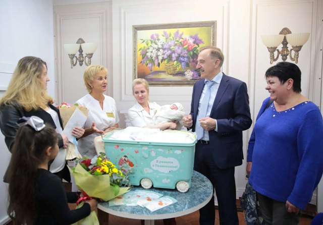 Сегодня, 5 сентября, глава городского округа Люберцы Владимир Ружицкий вручил молодой маме подарочный набор «Я родился в Подмосковье» в Московском областном центре охраны материнства и детства.