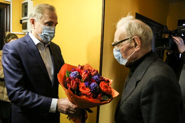Он вручил Владимиру Тюленеву награду, цветы, памятные сувениры, сладкий подарок.