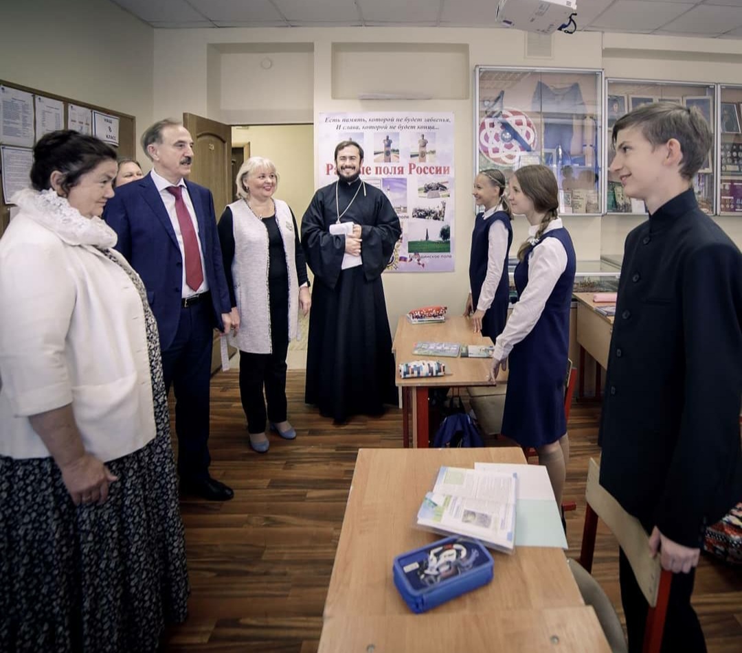 Глава Люберец осмотрел домовый школьный храм преподобного Сергия Радонежского, классы-музеи, мастерские. Он высоко оценил труд педагогов и учеников.