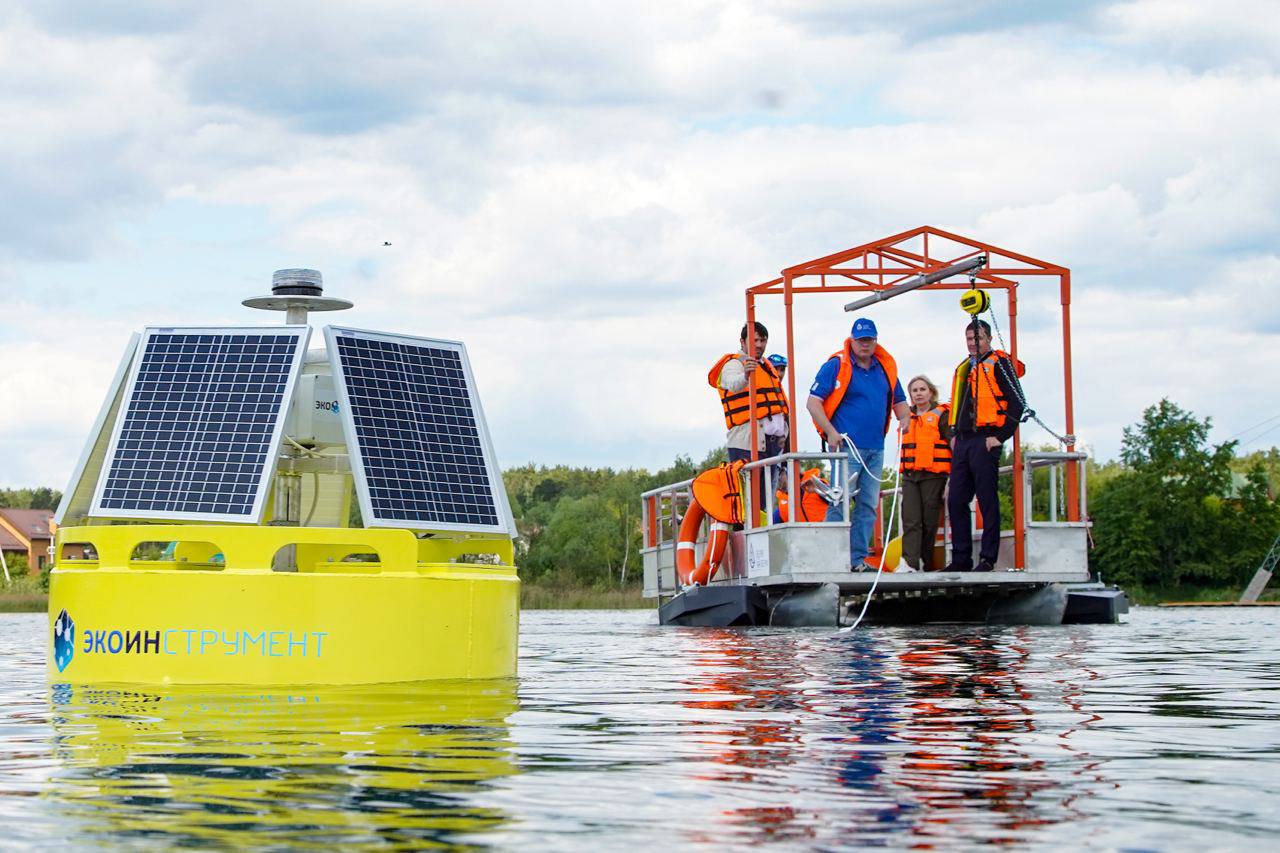 Глава городского округа Люберцы Владимир Волков вместе с руководителем Федеральной службы по надзору в сфере природопользования Светланой Радионовой, министром экологии и природопользования МО Тихоном Фирсовым приняли участие в установке уникального исследовательского речного буя «Буян» на воду Коренёвского карьера.