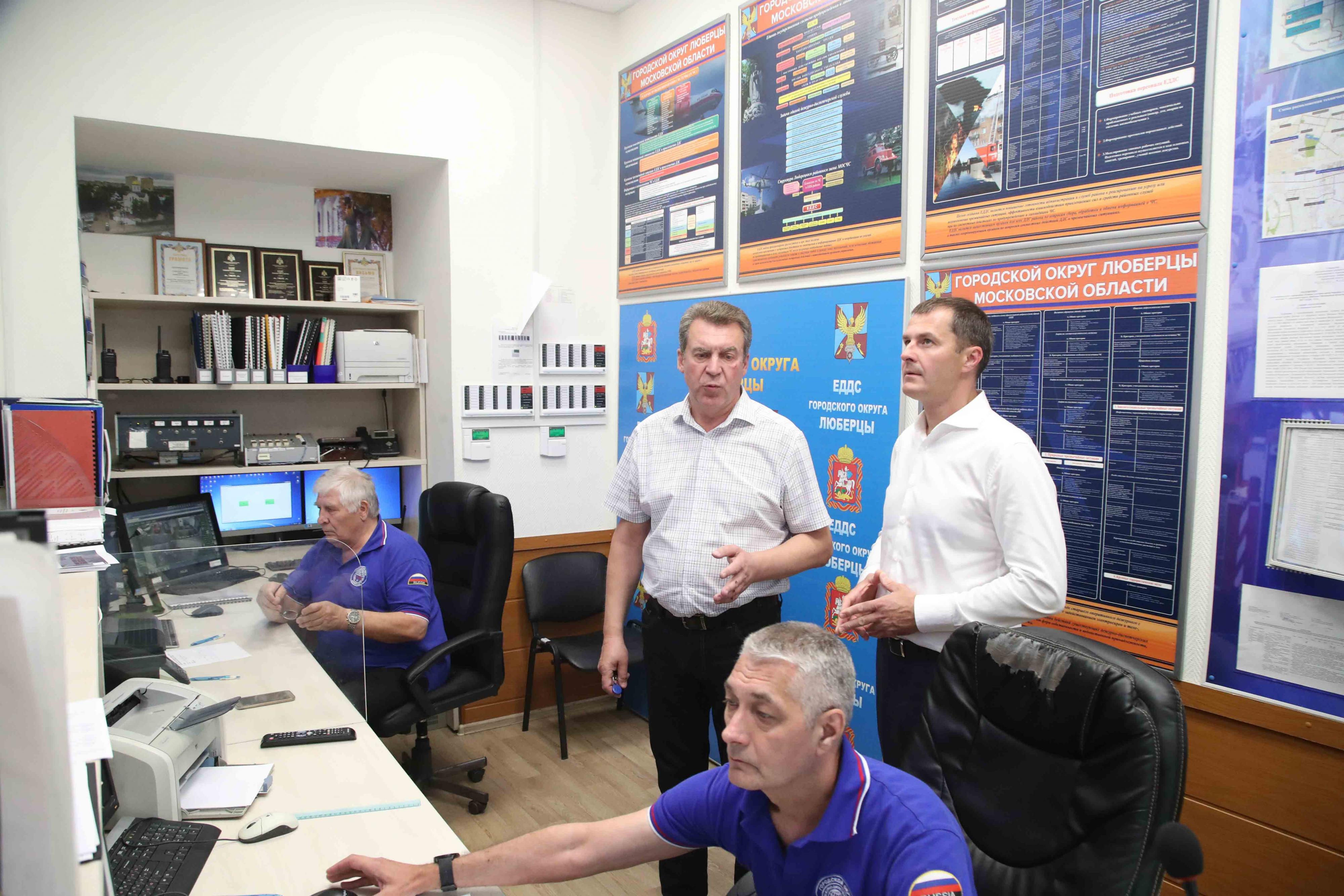 Исполняющий обязанности главы городского округа Люберцы Владимир Волков с рабочим визитом посетил ЕДДС-112 муниципалитета, пообщался с коллективом и директором службы Виталием Богдановым.