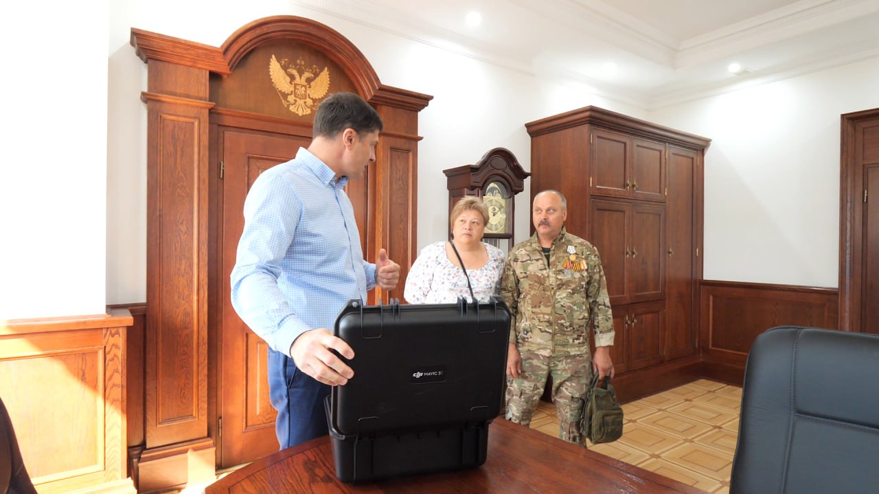 Глава городского округа Люберцы Владимир Волков в среду во время встречи с ветераном СВО передел ему квадрокоптер.