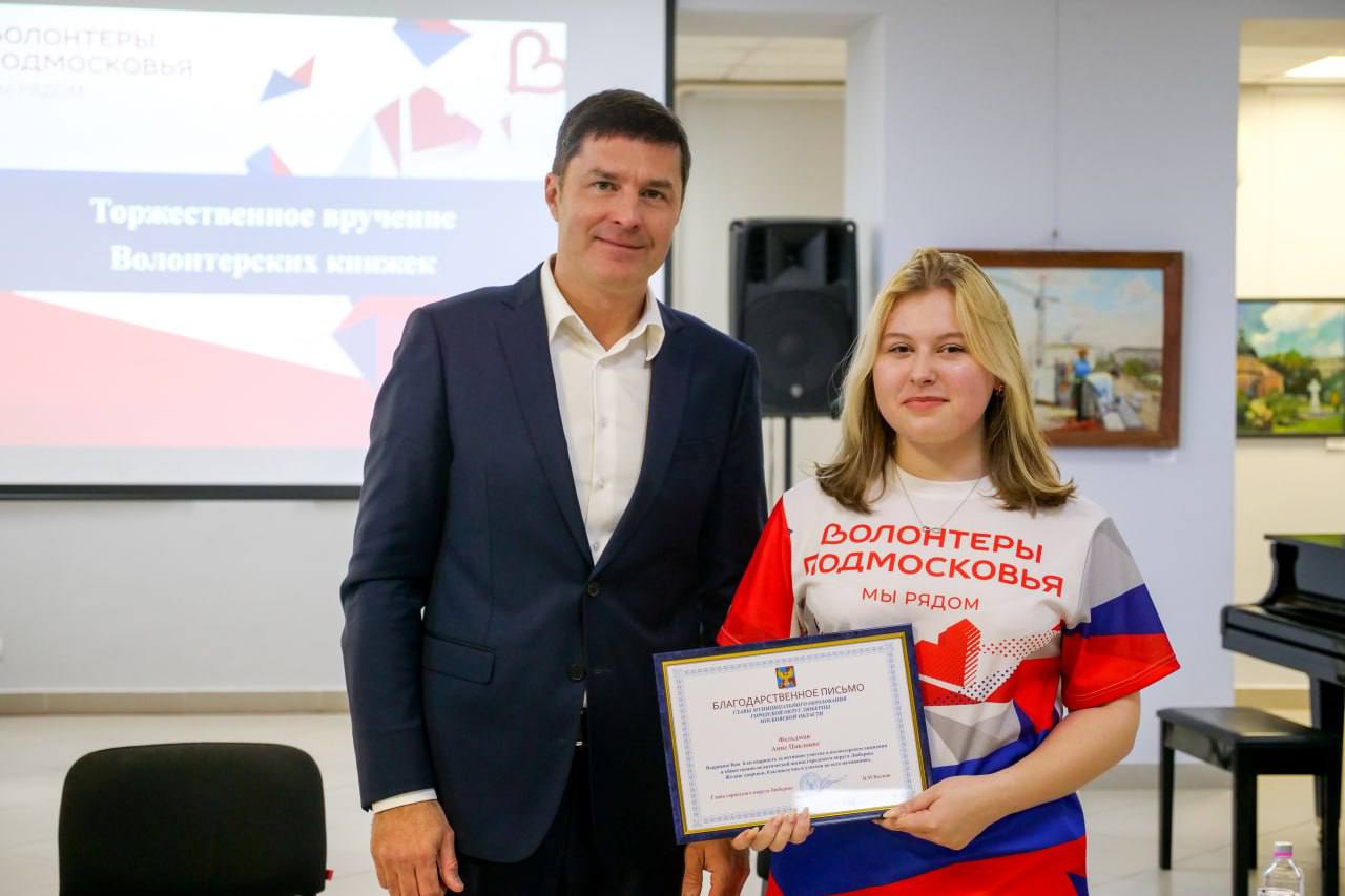Глава городского округа Люберцы Владимир Волков в торжественной обстановке вручил добровольцам главный документ – личную книжку волонтёра.