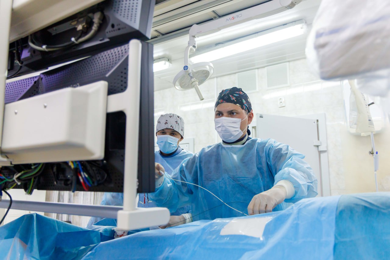 Операция проводится через небольшой прокол в бедренной артерии, куда вводится диагностический катетер. Такое вмешательство значительно сокращает сроки реабилитации и минимизирует риски для пациентов.