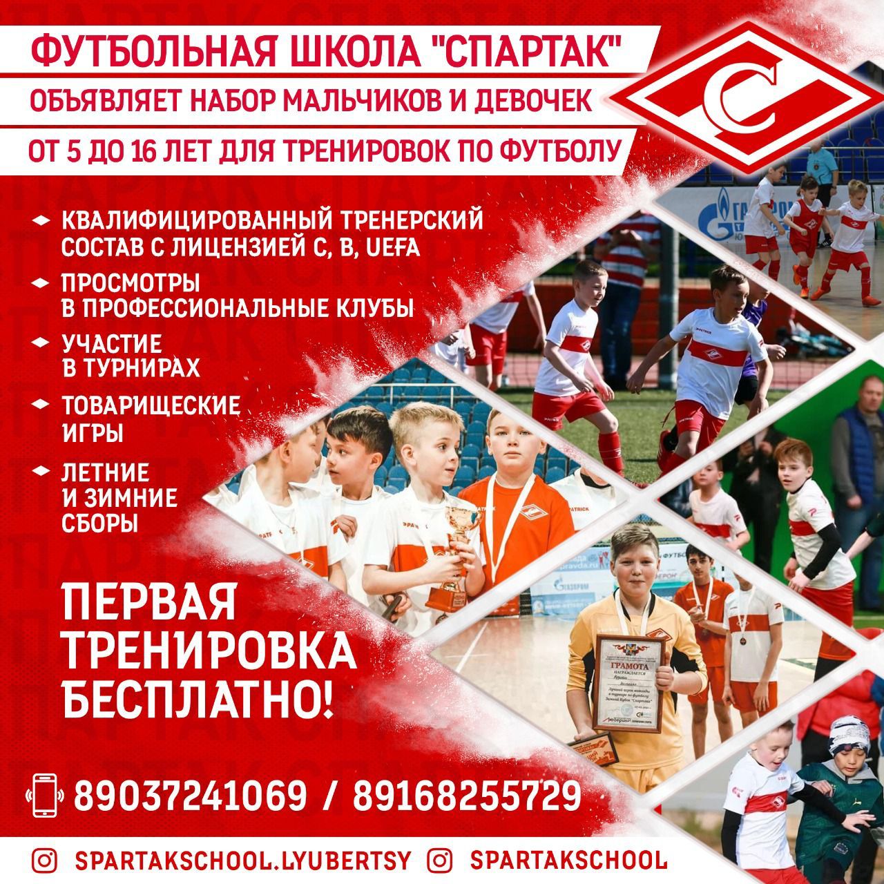 «Визитная карточка городского округа Люберцы, ФШ «Спартак» объявляет набор мальчиков и девочек от 5 до 16 лет для занятий футболом. Первая тренировка проходит бесплатно», - говорится в сообщении.