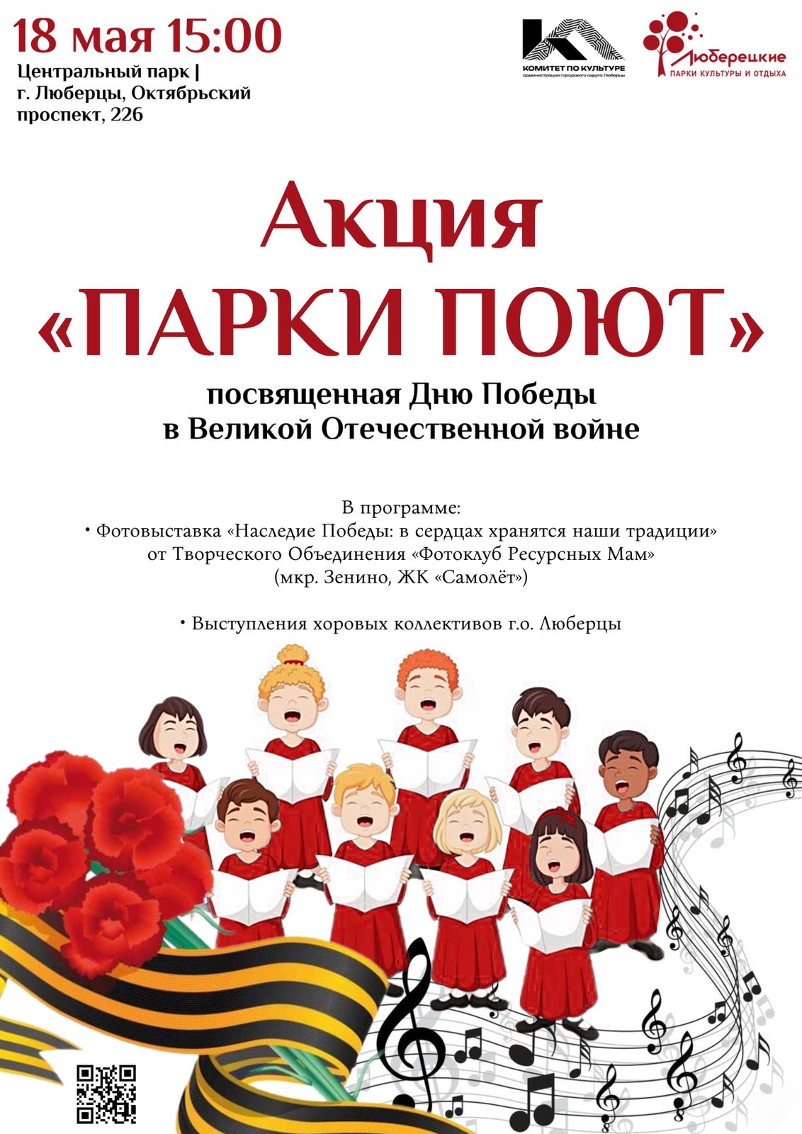 «18 мая всех ждем в Центральном парке на патриотической акции «Парки поют». Гости парка вместе с хоровыми коллективами городского округа Люберцы исполнят всеми любимые песни военных лет. Также будет организована фотовыставка «Наследие Победы» от фотоклуба ресурсных мам. Дети смогут принять участие в тематических мастер-классах. Приглашаются все желающие, спеть смогут все», - отметил Волков.