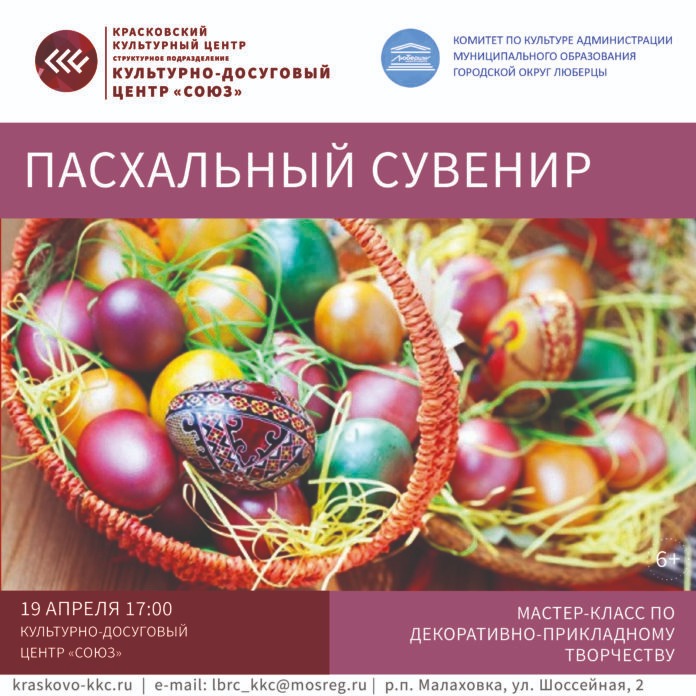 Жителей городского округа Люберцы приглашают на мастер–класс по декоративно–прикладному творчеству «Пасхальный сувенир», сообщили в комитете по культуре администрации муниципалитета.