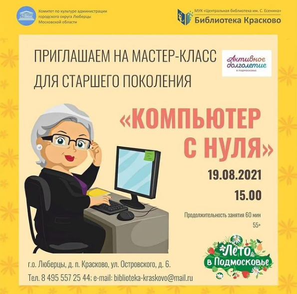 В библиотеке поселка Красково состоится мастер-класс по основам компьютерной грамотности для жителей городского округа Люберцы в возрасте от 55 лет, сообщили в учреждении.