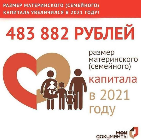 «При рождении первого ребенка можно использовать 483 881,83 рублей, что почти на 20 тысяч рублей больше суммы, которая была в 2020 году. Семьям со вторым ребенком начислят 639 431,83 рублей, если ранее они не получали средства за первого ребенка. Доплата за второго ребенка составит 155 550 рублей», - отмечается в сообщении.