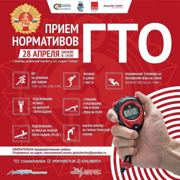На стадионе «Торпедо» в Люберцах горожане смогут поучаствовать в выполнении нормативов комплекса ГТО 28 апреля, сообщили в комитете по физической культуре, спорту и туризму администрации муниципалитета.
