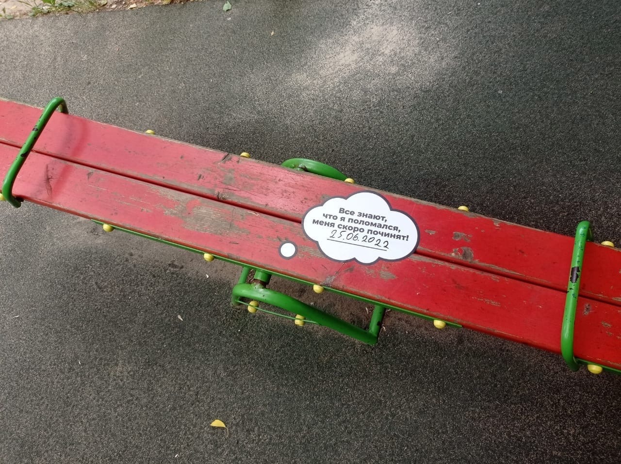 «В городском округе Люберцы введен новый способ информирования граждан путём размещения специализированных стикеров на малых архитектурных формах с неисправными элементами, а также на резиновом покрытии детских игровых и спортивных площадок», - говорится в сообщении.