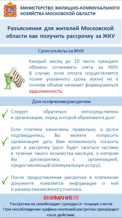Для получения рассрочки жители городского округа Люберцы могут обратиться непосредственно в организацию, перед которой образовался долг.