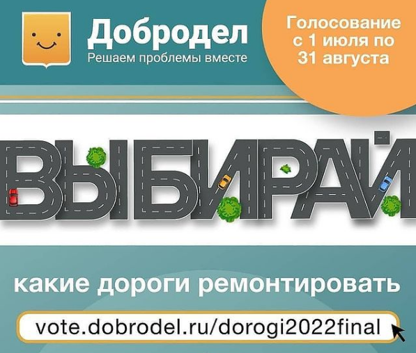 В списке для голосования - 65 дорог, расположенных на территории городского округа. Они представлены на интерактивной карте по ссылке: vote.dobrodel.ru/dorogi2022final.