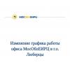 12 ноября 2020Офис МосОблЕИРЦ в Малаховке будет работать два дня в неделю Клиентский офис МосОблЕИРЦ в Малаховке Люберец с 12 ноября переходит на новый режим работы, он будет принимать горожан два раза в неделю, сообщили в управлении жилищно-коммунального хозяйства администрации муниципалитета.