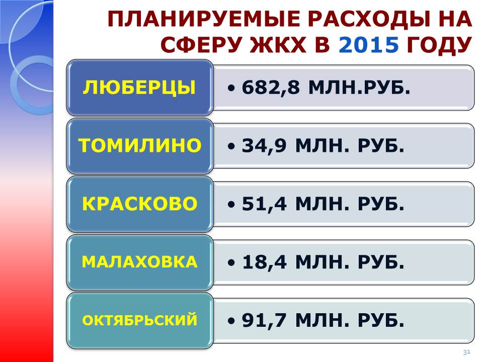 В 2014 году на ремонт объектов ЖКХ в общей сложности было затрачено 620 млн. руб. Особо значимым направлением стала замена 98 лифтов, на которую было направлено более 150 млн. руб. Контроль при этом обеспечивался не только администрациями городских поселений, но и Советами многоквартирных домов. В 2015 году мы продолжим эту работу и заменим еще 83 лифта. На 2015 год запланированы мероприятия по капитальному ремонту, реконструкции, модернизации и строительству объектов ЖКХ на общую сумму 880 млн. руб., то есть больше чем на 40 % по сравнению с прошлым годом. Из них почти половина средств предусмотрена на ремонт многоквартирных домов.