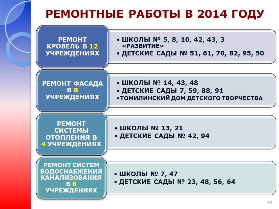 - в планах реконструкция и ремонт объектов водоснабжения и водоотведения и теплоснабжения; - капитальный ремонт инженерных систем многоквартирных домов.