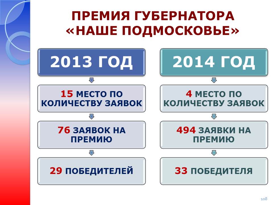 - Социальный проект « Премия Губернатора «Наше Подмосковье» - 494 заявки, 33 победителя – это 4 место в области. Отдельно хочу поблагодарить наших лауреатов - ветеранов Великой Отечественной войны: