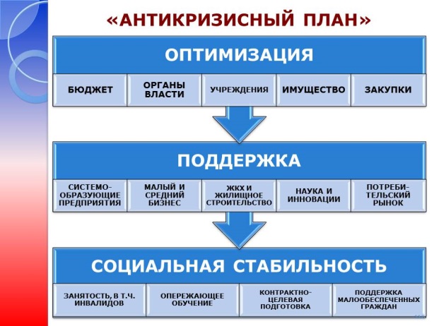 Необходимо пересмотреть и исключить из реестров расходов закупки за бюджетные средства - машин, мебели, услуг и еще целого ряда не первоочередных предметов, оптимизировать численность муниципальных служащих.
