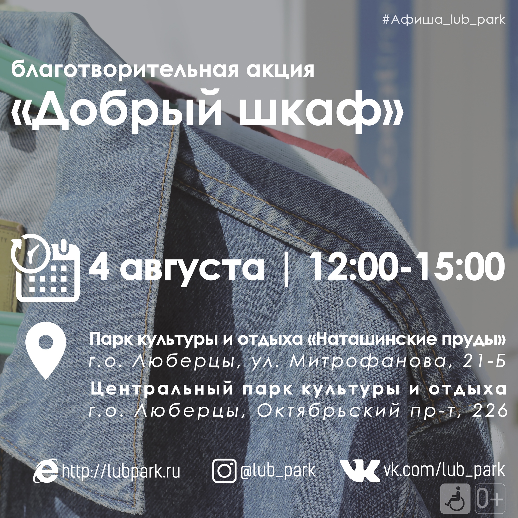 4 августа с 12:00 до 15:00 в Люберецких парках культуры и отдыха все люберчане и жители ближайших городов и районов смогут принять участие в благотворительной акции “Добрый шкаф”.