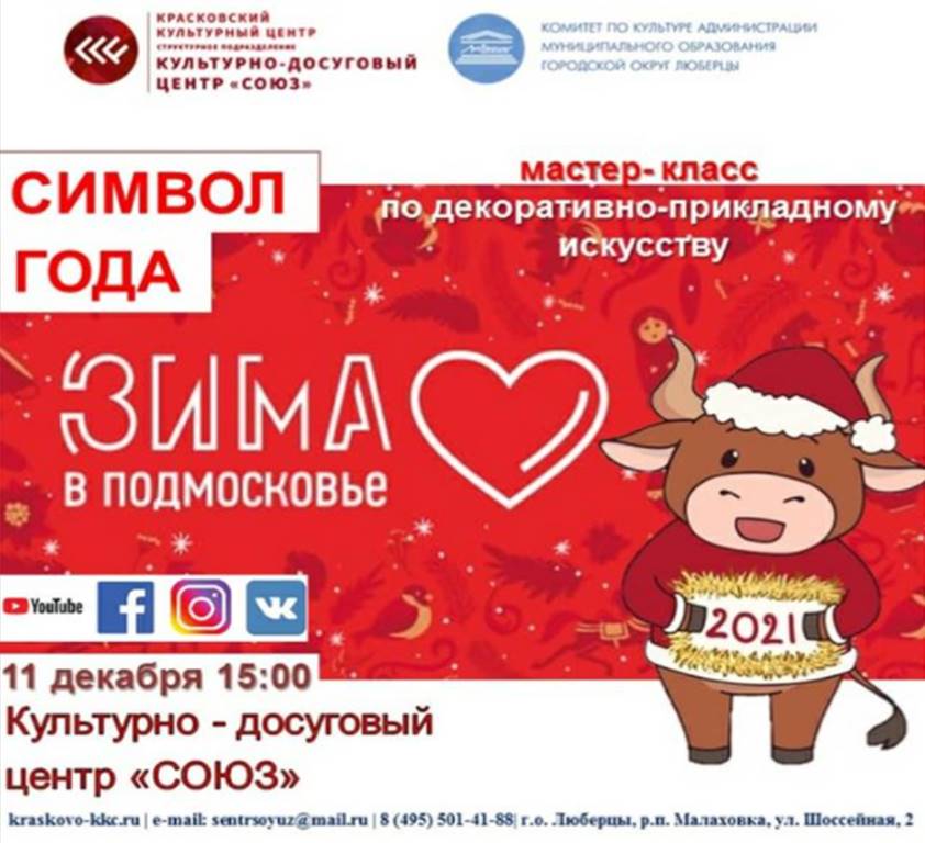 В пятницу, 11 декабря, КДЦ «Союз» приглашает люберчан на онлайн-мероприятия: