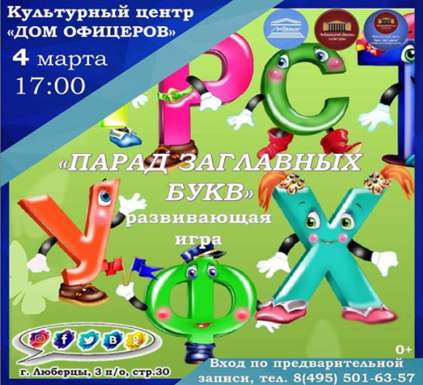 4 марта культурный центр «Дом офицеров» приглашает юных люберчан присоединиться к развивающей игре «Парад заглавных букв».