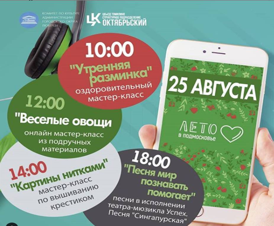 Во вторник, 25 августа, культурный центр Октябрьский приглашает люберчан на онлайн-мероприятия: