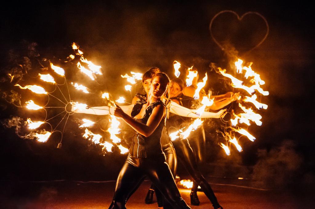 После праздничного концерта зрителей ждут выступления акробатов, светодиодное шоу и фаер-шоу «Огненная любовь».