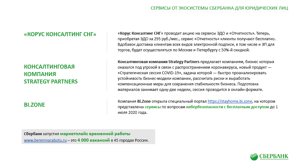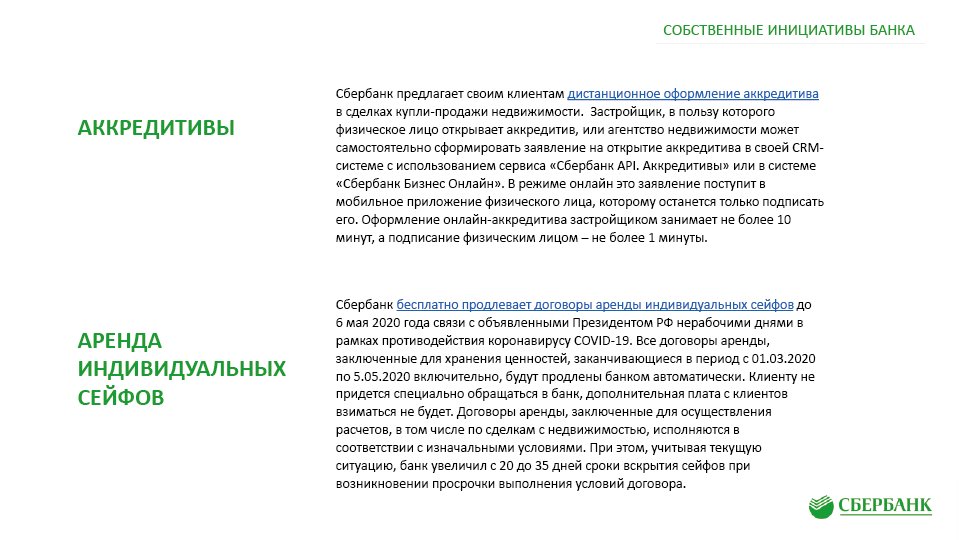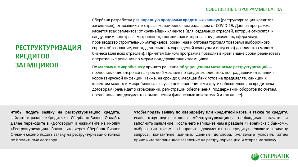 Антикризисные меры поддержки клиентов ПАО «Сбербанк» в связи с Covid-19