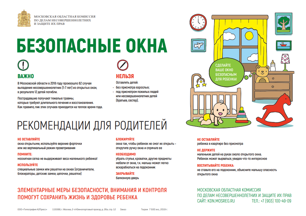 - Не оставлять малолетних детей без присмотра в помещении даже на короткий промежуток времени, где открыты окна.